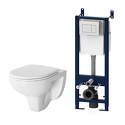 Полностью готовый к установке комплект: система инсталляции с клавишей подвесной унитаз с сиденьем. Неразборная рама из стального профиля выдерживает нагрузку до 400 кг. Полностью изолированный бачок с двухрежимной смывной арматурой. Укомплектован механической клавишей в цвете белый. В комплекте все необходимые патрубки и крепления а также прокладка между унитазом и стеной - звукоизоляция.