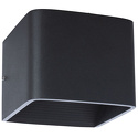 Накладной светильник стиля техно для гостиной, кабинета, коридора, прихожей или спальни имеет размеры 100x100x80 мм. Арматура светильника окрашена в черный цвет. Лампы в комплекте - светодиодные [LED]. В светильнике применяются светодиодная LED-лампа. Цвет плафонов - черный, с матовой поверхностью. Материал плафонов - дюралюминий. Класс электробезопасности - I, степень пылевлагозащиты (IP) - 20. Максимальная мощность лампы (Вт) - 5. Светильник размещается на стене.