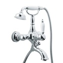 Назначение: ванна+душ • Конструкция: однорычажный • Монтаж: вертикальный • Материал: покрытие - хром • Подводка: жесткая • Монтажные отверстия: 2 отверстия • Форма излива: традиционная • Душевая лейка в комплекте: есть • Держатель для душевой лейки: на смесителе