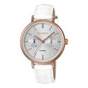 Женские наручные часы • кварцевые • противоударные • будильник • подсветка • водонепроницаемость WR50 • корпус золото+нерж. сталь • кожаный ремешок