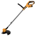 Двигатель: электрический (аккумулятор), 300 Вт • Аккумулятор: 12 В, 2 Ач, 2 шт • Покос: ширина 20 см • Вес косилки: 1.72 кг