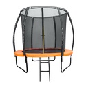 Каркасный батут, диаметр 244 см, максимальная нагрузка 150 кг, с лестницей, W-образные опоры, с защитной сеткой, с защитой пружин, материал мата - перматрон, материал ножек - гальванизированная сталь, материал защитной сетки - нейлон