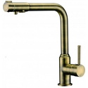 Назначение: кухонный • Конструкция: однорычажный • Монтаж: горизонтальный • Материал: латунь, покрытие - бронза • Монтажные отверстия: 1 отверстие • Форма излива: традиционная • Душевая лейка в комплекте: нет • Донный клапан в комплекте: есть