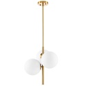 Люстра на штанге стиля модерн для гостиной, кабинета или спальни имеет размеры 390x1220 мм. Арматура светильника окрашена в латунный цвет. Лампы в комплекте - отсутствуют. В светильнике применяются лампы накаливания или светодиодная LED-лампа. Цвет плафонов - белый, с матовой поверхностью. Материал плафонов - стекло. Класс электробезопасности - I, степень пылевлагозащиты (IP) - 20. Максимальная мощность лампы (Вт) - 40. Светильник размещается на потолоке.