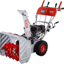 Снегоуборщик бензиновый Ресанта СБ 4100 предназначен для расчистки небольших территорий от снега. Самоход, оборудован 4-тактным двигателем мощностью 6.5 л.с. Ширина обработки за один проход равна 56 см. Специальным рычагом можно установить удобное направление выброса снега. Металлический шнек может измельчает заледенелый, плотный или мокрый снег. Рабочая система снегоуборщика Ресанта представляет собой снегозаборный желоб со шнеком, а также вентилятор в форме крыльчатки и желоб для выброса снега .
